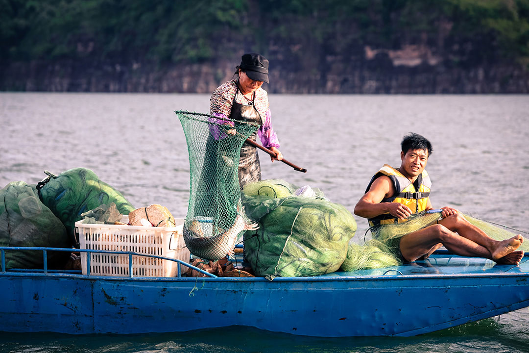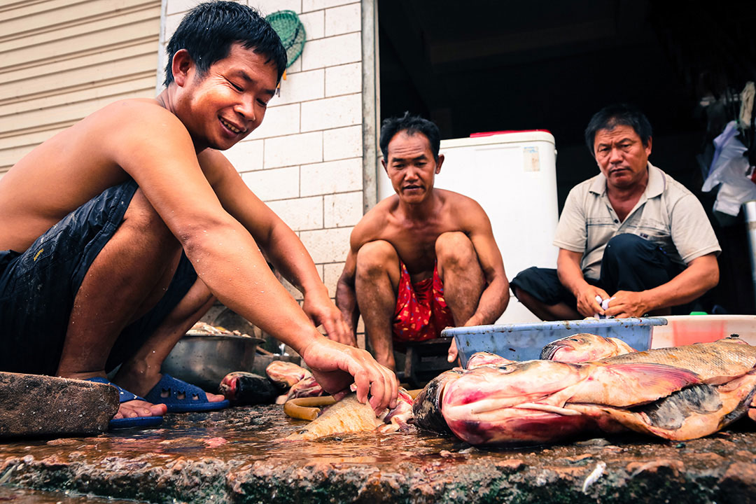 Some 125 miles north from Jinghong I reach Nuo Zha Du, the second-largest dam on the river. An old fisherman in a relocated village on a treeless slope descending to the dam explains how a small fishing industry has sprung up. Businesspeople from far away are attracted by the introduction of new species of fish into the dam’s reservoir. Most of the native fish are gone now, the fisherman says.