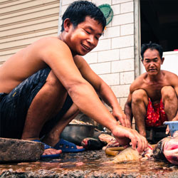 “In the old days, we fitted into nature,” he says. Each flood season the river would water and fertilize their farms. Now they must clear the land and use fertilizer to make the crops grow. But people have to make a living somehow. The dam has broken the balance between the traditional people and nature. The Chinese government now considers these indigenous minorities to be a threat to the environment.